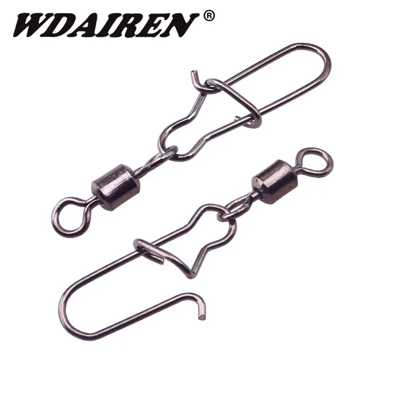 20 Pcs Stainless Steel Fishing Connector Pin Bearing Rolling Swivel Snap Pins Size 6# 8#10# 12# Fishing Tackle Accessories