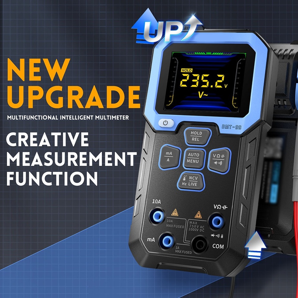 GVDA Smart Rechargeable Digital Multimeter True RMS 9999 Counts 1000V 10 ADC AC Voltage Current Multimetro Color LCD Multitester