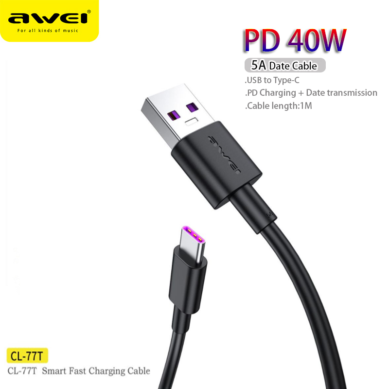 Awei 60W 6A USB Type C to Type C data cable Iphone 15 Xiaomi Poco fast charge USB C data cable