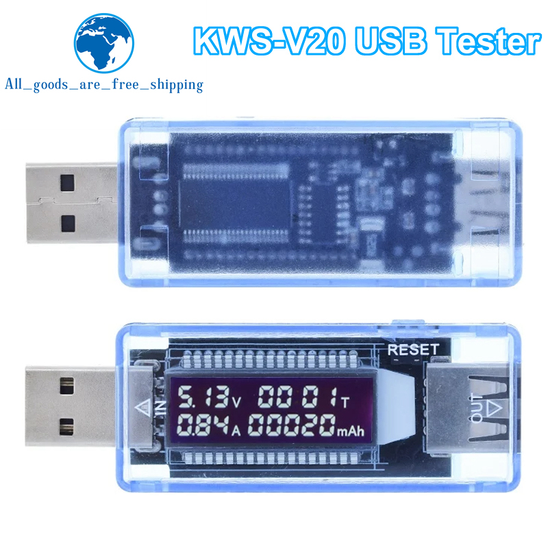 Battery Tester USB Transparent Blue Voltmeter Current Capacity Charger Meter Mobile Power Smart Home Portable Timing Test V20