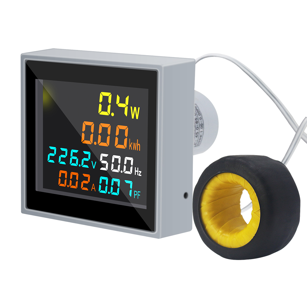 170-270V/63A Power Meter 8in1 Color Screen Multi-function AC Energy Power Voltmeter Voltage Amps Watt Kwh Meter Remotely Control