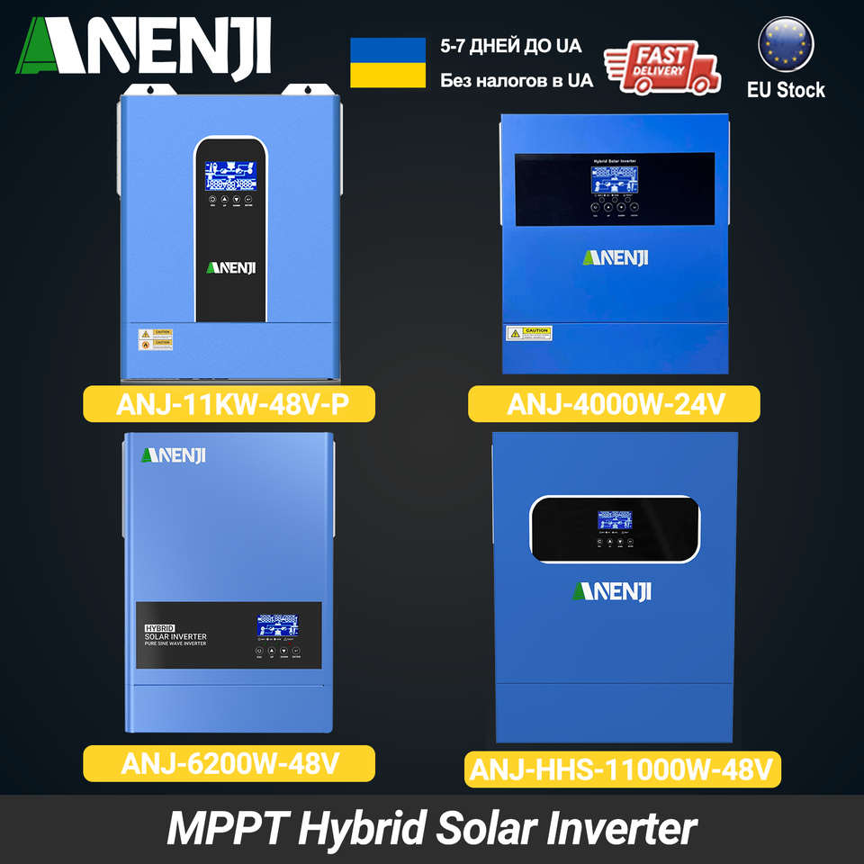 ANENJI 6.2KW 4.2KW Solar Inverter Hybrid 48V 24V Pure Sine Wave On/OffGrid MPPT 120A 100A PV 500VDC Solar Controller EU Shipment