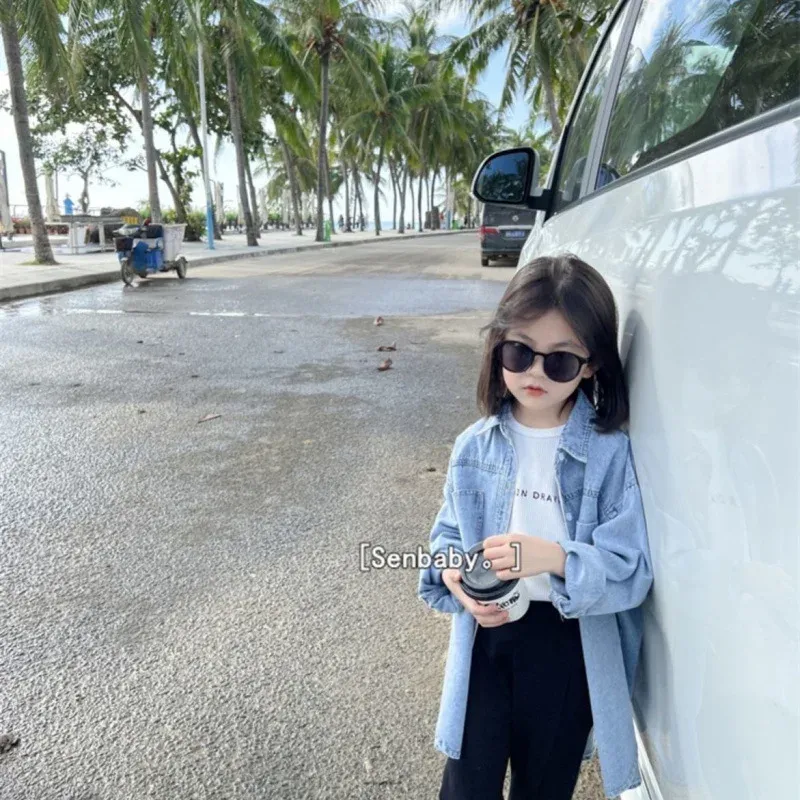 2025 new spring autumn summer Girls Kids Denim shirt comfortable cute baby Clothes Children Clothing