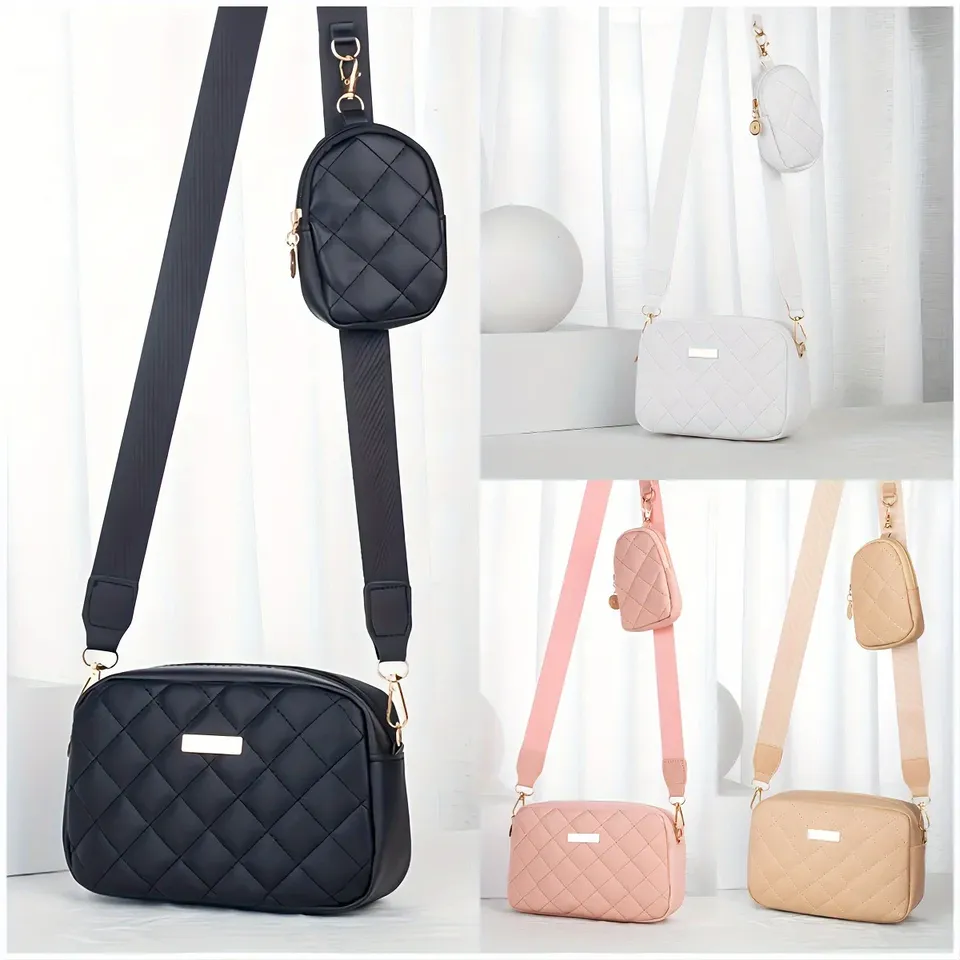 New Solid Color Multi-layer Women Sling Crossbody Bag Vinatge PU Leather Wide Strap Shoulder Bag