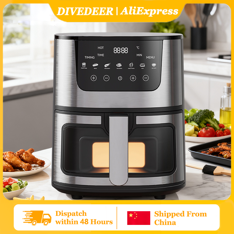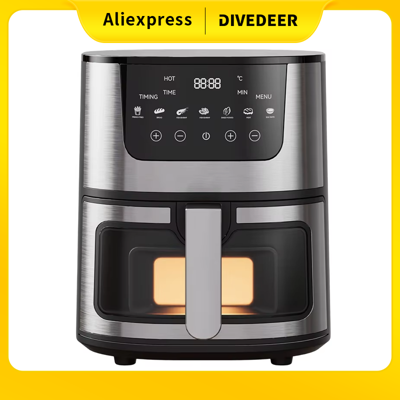 DIVEDEER 7L Household Visual Air Fryer - Large Capacity, Multifunctional, Stainless Steel Design for Home Use (Freidora Aire)